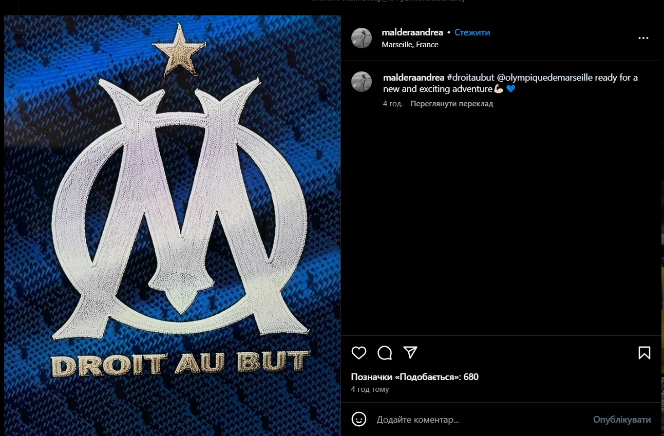 Однак ця інформація виявилася неправдивою. Крапку в історії поставив сам Малдера. Італієць у своїх соцмережах опублікував допис, анонсувавши свій перехід до Марселя. "Готовий до нової цікавої подорожі", – написав Андреа.
