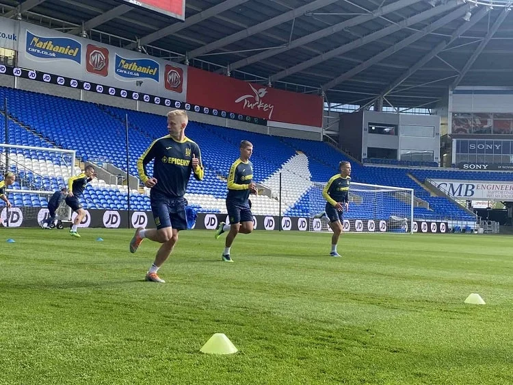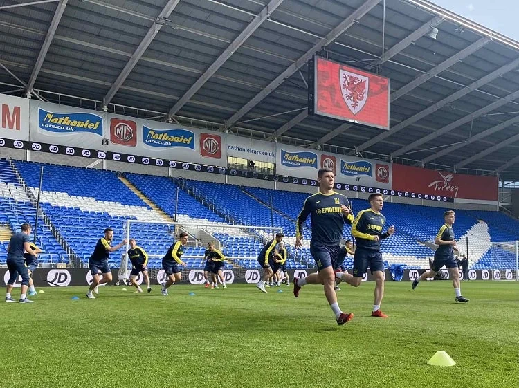 Офіційне тренування напередодні на Кардіфф Сіті Стедіум, домашній арені Уельсу, розпочалось з розминки й традиційних підготовчих вправ, інформує сайт УАФ.