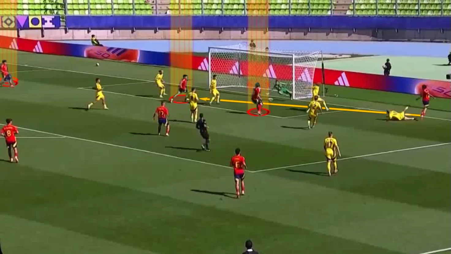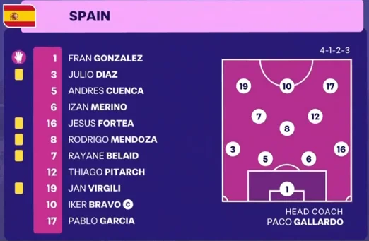Певні труднощі у грі простежувались. Зокрема, команда дійсно створювала мало гострих епізодів. Із таким футболом підопічні Пако Гальярдо турнір не виграють – але вони все одно домінували з непристойною статистичною перевагою. Іспанці контролювали м'яч 64% часу, провели в чотири рази більше пасів і вдвічі швидше повертали володіння після втрат.