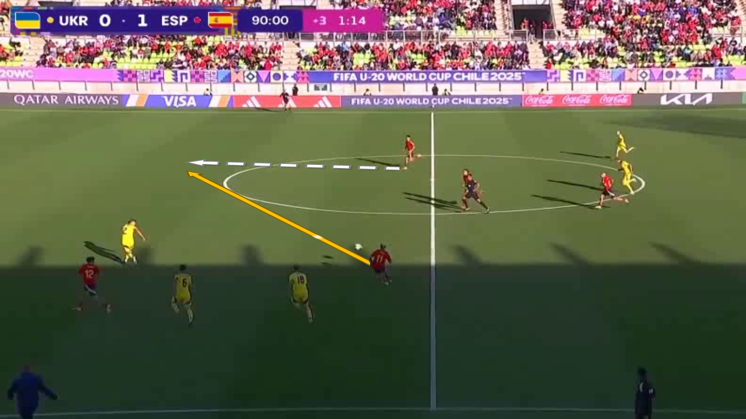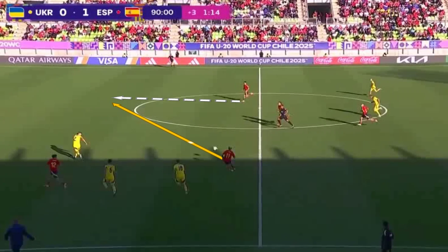 Україна перестала сідати настільки ж низько, як до перерви. Команда дала значно більше інтенсивності в середньому блоці і навіть увімкнули систематичний високий пресинг – у першому таймі це теж було, однак тоді іспанці легко долали тиск. Тепер у них було трохи менше свободи.