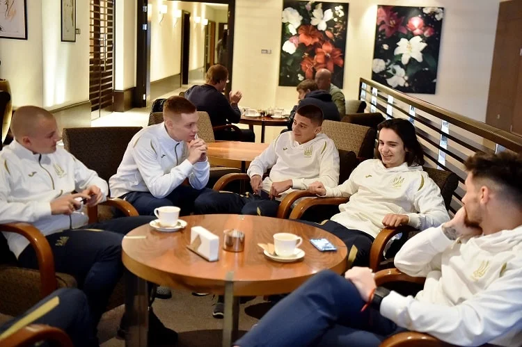 Гравці національної збірної України прибули у київський готель "Хаятт Рідженсі", де перебуватимуть до відльоту на матч зі Словаччиною.