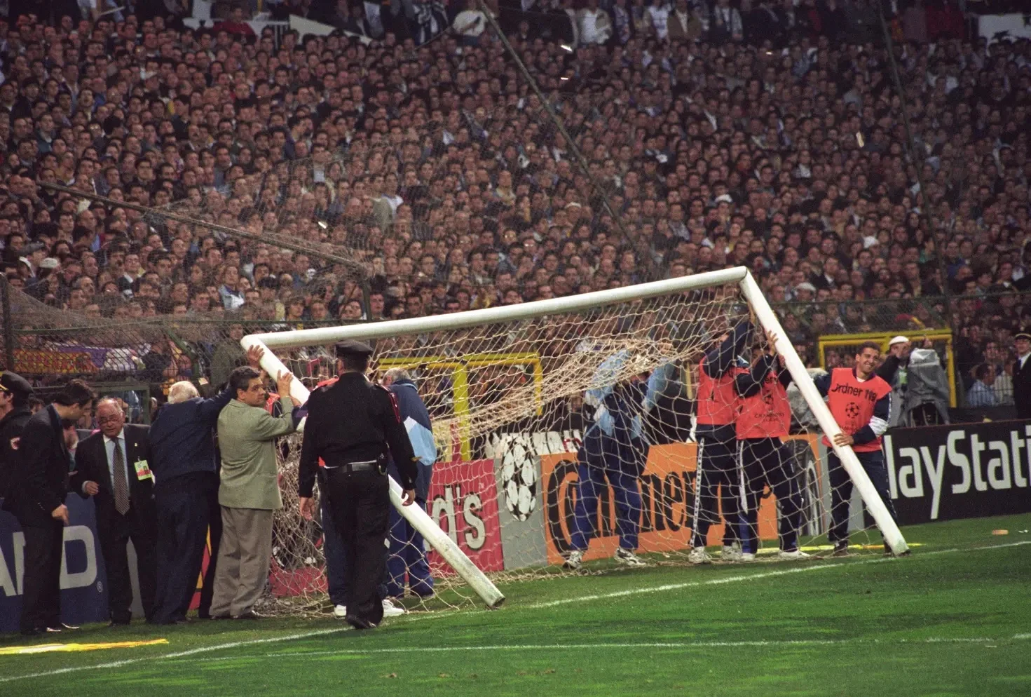 У підсумку судді довелося відправити команди до роздягалень. За цей час працівники стадіону взялися відновлювати ворота. Але це завдання виявилося із зірочкою. Запасних воріт на Сантьяго Бернабеу не знайшлося, тож робітники почали ремонтувати вже зламаний каркас. У хід пішли молотки, зубила та дерев'яні бруски. Просто вдумайтеся у сюрреалізм ситуації – Реал не міг розпочати один із найважливіших матчів останніх 30-ти років через завалені ворота…