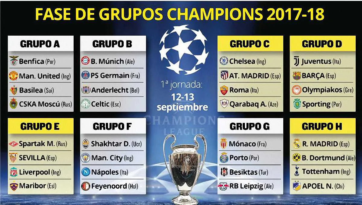 Результати жеребкування групового етапу Ліги чемпіонів 2017/18