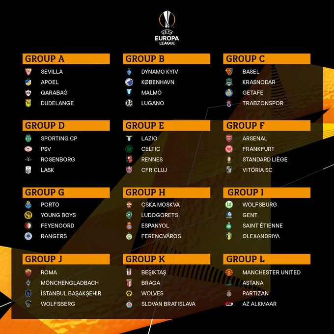 Севілья, Арсенал, Порту, Рома, Манчестер Юнайтед, Динамо, Бешикташ, Базель, Спортінг Лісабон, ЦСКА Москва, Вольфсбург, Лаціо.