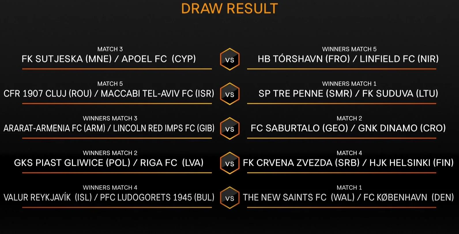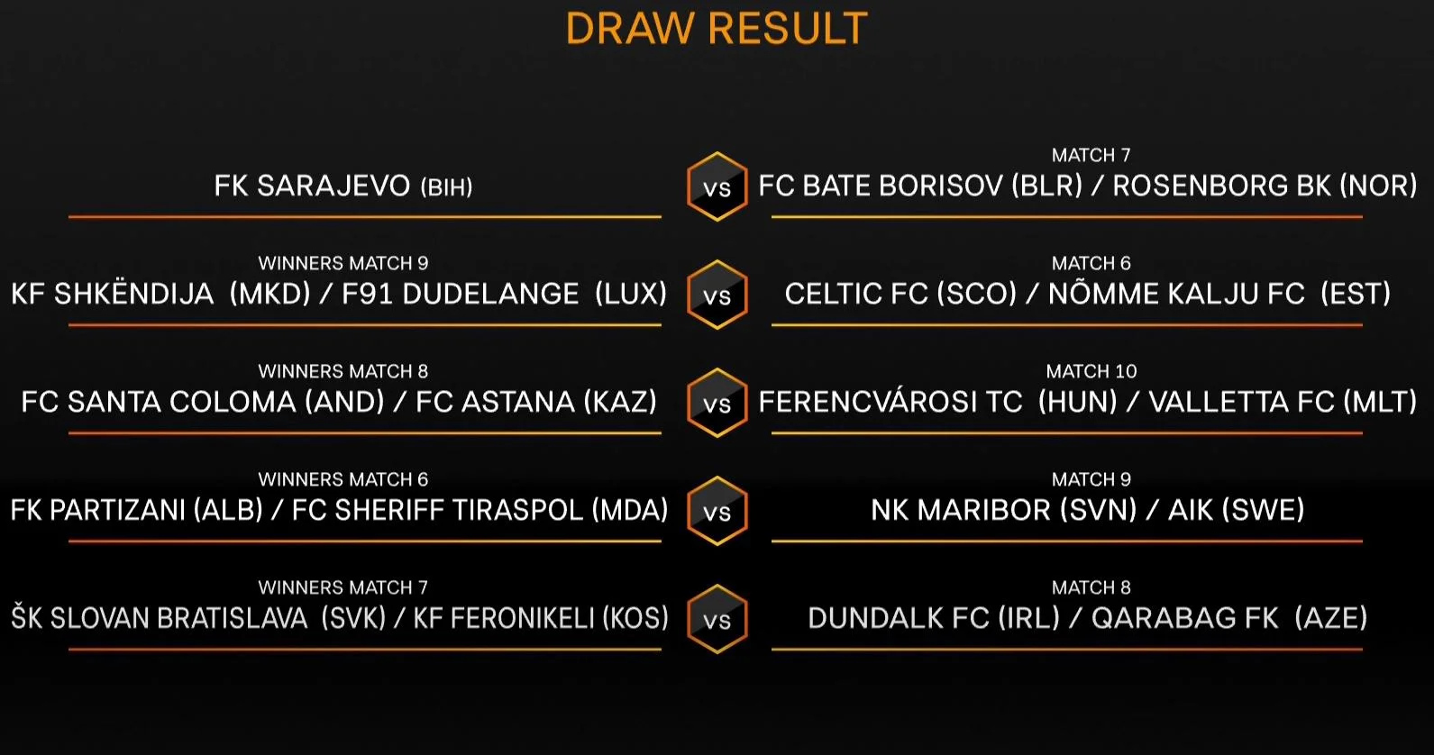 Поєдинки пройдуть 8 та 15 серпня. Переможці пройдуть у раунд плей-офф кваліфікації ЛЄ.