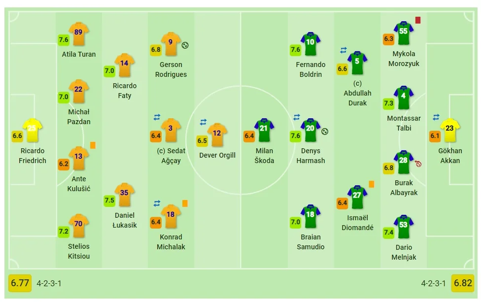 Статистичний портал Sofascore визнав Дениса Гармаша одним із найкращих гравців матчу – українець отримав оцінку 7,6 балів (середня оцінка Різеспора – 6,83). Гру Морозюка оцінили у 6,3 бали. Жерсон Родрігес став найкращим серед гравців атаки Анкарагюджю – у нього оцінка 6,8 балів.