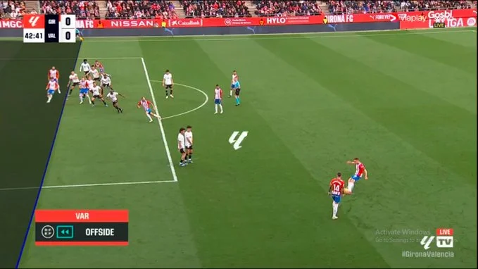 Попри перевагу у володінні Жирони, "кажани" зуміли створити кілька моментів. Найнебезпечніший був на 21 хвилині – Фран Перес класно увійшов у штрафний, тільки пробив вище воріт. Жирона продовжувала шукати підходи й можливості пройти низький блок Валенсії. На 39 хвилині каталонці заробили право на штрафний удар. При подачі арбітри розгледіли офсайд у Циганкова.