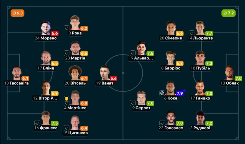 Циганков і Ванат зазнали розгрому від Атлетіко – українці провели невдалий матч, Жирона залишилась у зоні вильоту