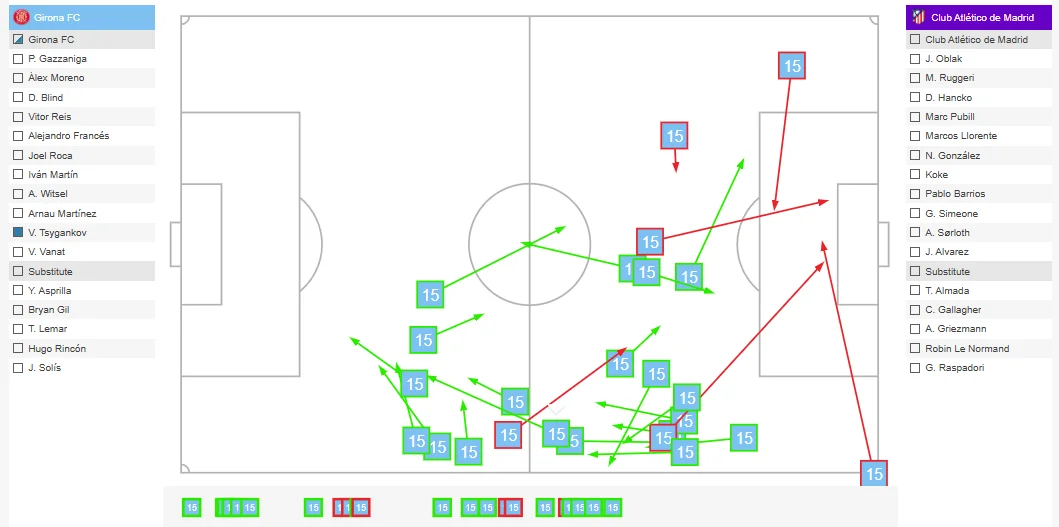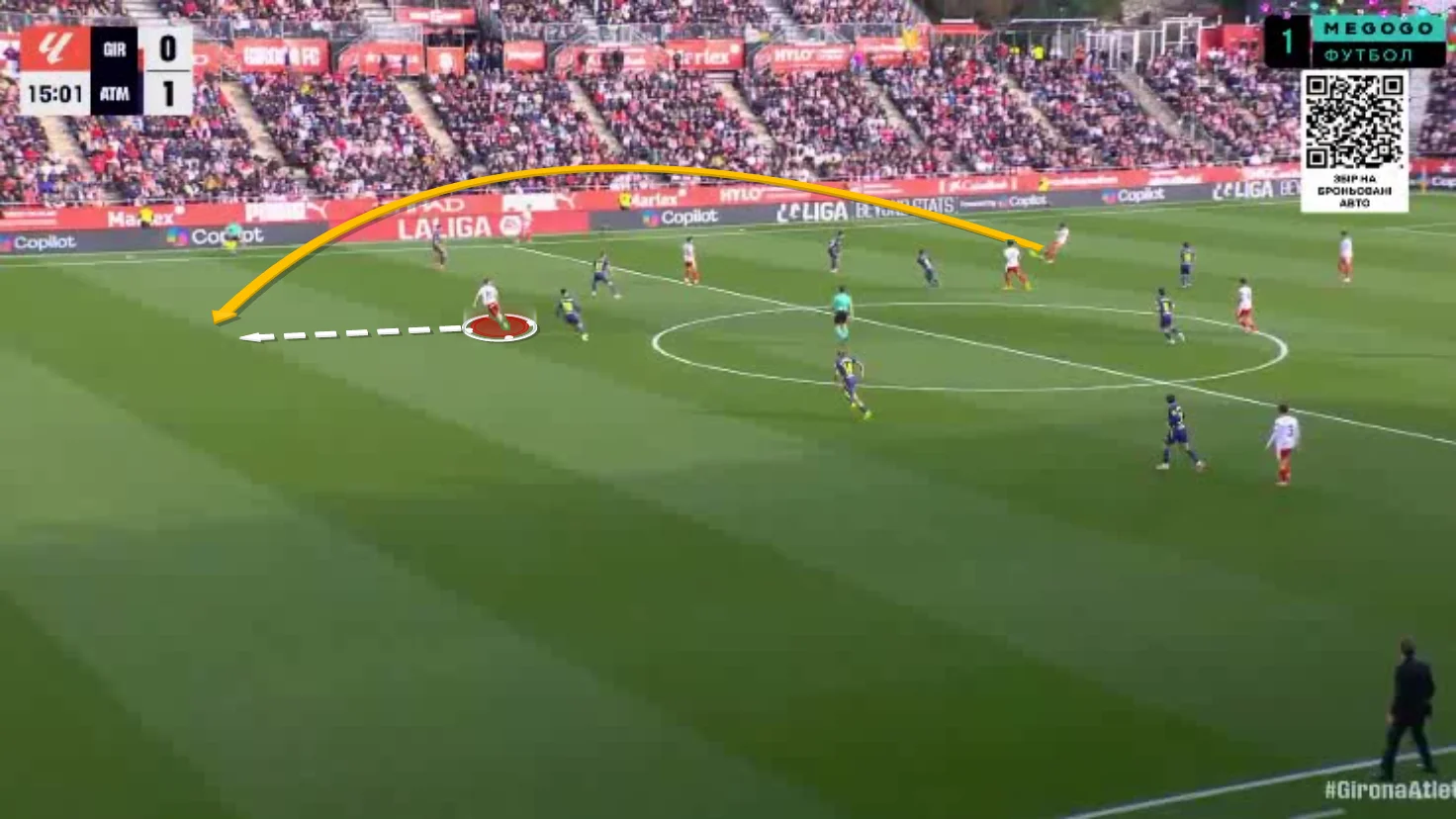 Жироні було дуже важко зламувати компактний блок Атлетіко, тож у напрямі Ваната йшло чимало лонгболів або пасів у боротьбу. Простору майже не виникало, що негативно позначилось на ефективності Владислава. Наш земляк програв майже всі дуелі.