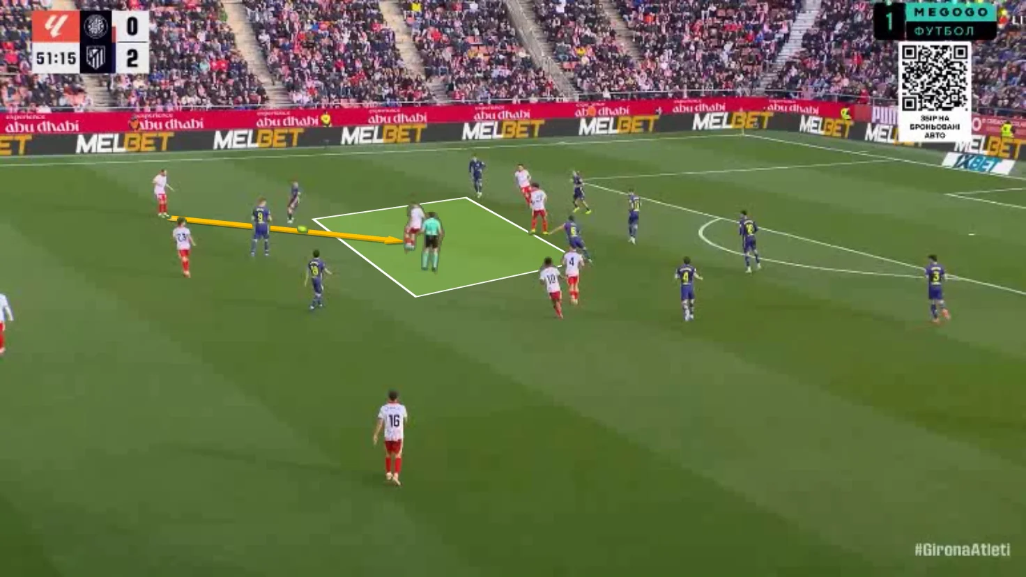 Цей момент став для Жирони передостаннім у зустрічі. Каталонці змушені були відігруватись увесь матч, дозволяючи Атлетіко відсиджуватись у середньому блоці й карати у контратаках. Такий футбол на 38-й хвилині вилився у другий пропущений м'яч – це Галлахер пробивав з лінії штрафного, а м'яч від п'ятки Рейса залетів під ліву стійку. 0:2!
