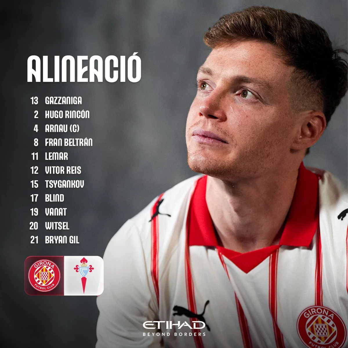 Стартовий склад Жирони: Гассаніга, Рінкон, Арнау, Бельтран, Лемар, Рейс, Циганков, Блінд, Ванат, Вітсель, Хіль.