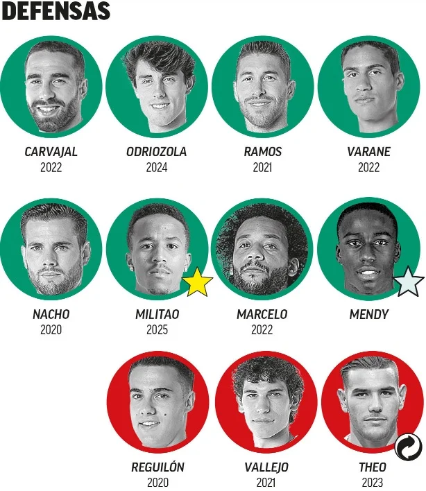 Вже офіційний трансфер Мілітао, а також просунута стадія перемовин з Ліоном щодо переходу Менді зачиняють двері перед трьома молодими захисниками, на яких ще зовсім недавно покладались величезні сподівання. Мова йде про двох лівих латералів Серхіо Регілона і Тео Ернандеса, а також центрального оборонця Хесуса Вальєхо. Перший зробив серйозний прорив при Соларі, але Зідан збирається довірити його позицію 23-річному гравцеві Ліона та своєму улюбленцю Марсело.
