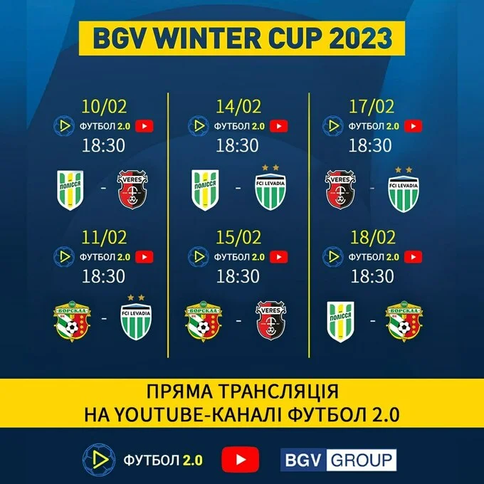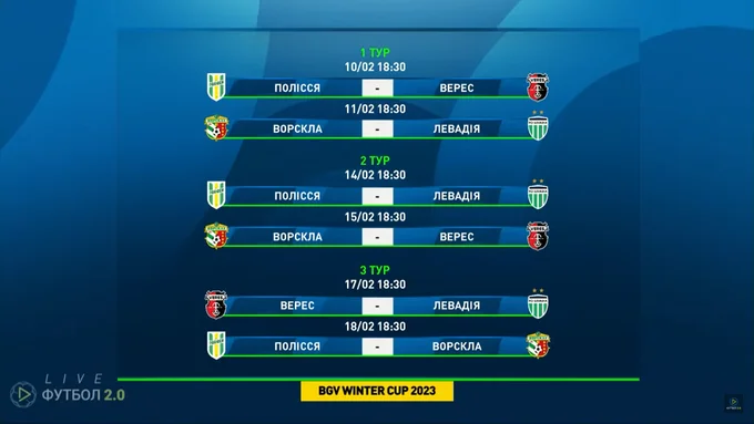 Перекроєний графік матчів "Зимовогокубка-2023" виглядає наступним чином: