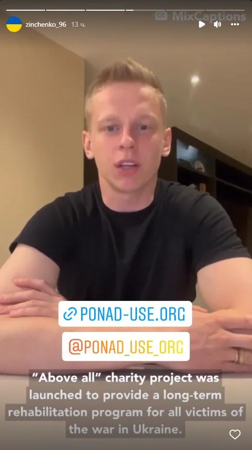 Ми ставимо перед собою завдання, щоб усі українські діти та дорослі, які постраждали від російської агресії, могли отримати медичну та психологічну допомогу. Долучися й ти в цей непростий момент та допоможи українцям", – сказав Зінченко на своїй сторінці у соціальній мережі Instagram.