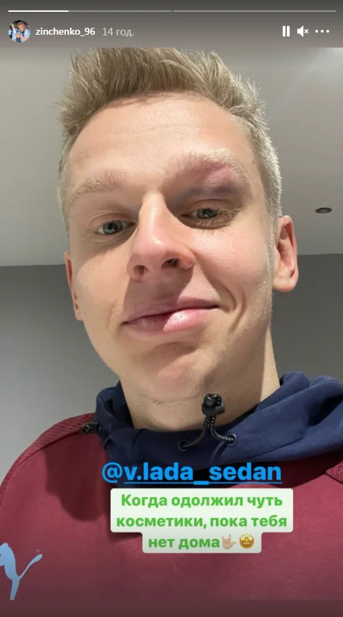 Зінченко "похизувався" чималим синцем – довелося зичити косметику дружини