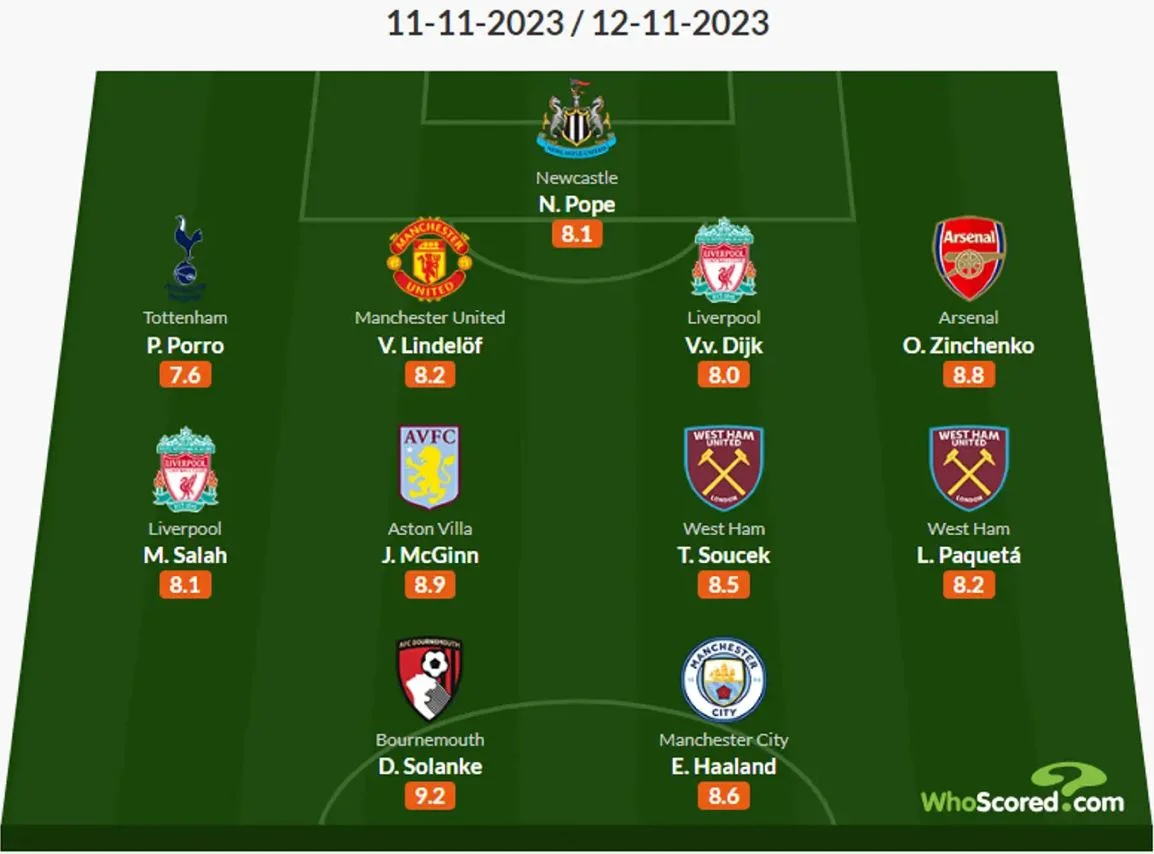 SofaScore поставив нашому земляку найвищу оцінку – 8,9 бала. WhoScored оцінив гру українця у 8,8 бала (більше набрали лише Домінік Соланке з Борнмута (9,2) та Джон Макгінн з Астон Вілли (8,9).