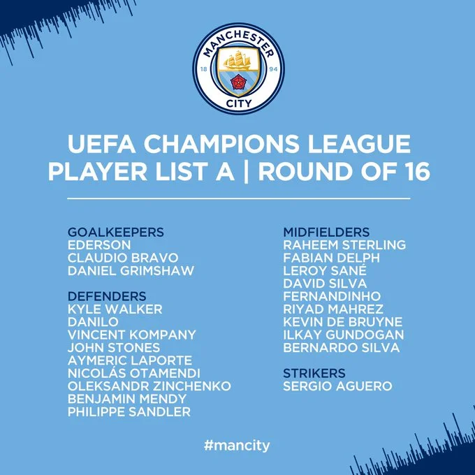 Хосеп Гвардіола зможе розраховувати у весняній частині Ліги чемпіонів на 22-х виконавців. Зазначимо, що в заявці, опублікованій клубною прес-службою "містян", Зінченко фігурує як захисник.