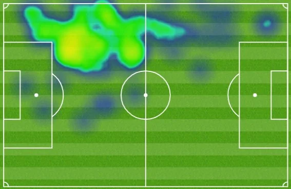 Тепер про сильну сторону, яка цього разу не розкрилася. Станом на 67-му хвилину (коли його замінили) Зінченко традиційно був серед лідерів команди за кількістю передач і дотиків до м'яча, але загострення від нього не йшло. 3 точні дальні передачі, 1 вдалий крос у штрафний майданчик, навіть точність передач нижча середньої по сезону (87%).
