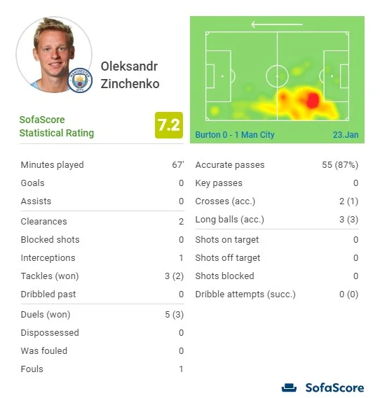 Звичайно, потрібно робити поправку на те, що українця оточували не топ-партнери. З центра поля зв'язок з командою забезпечували не Сілва чи Гюндоган, а Делф. Олександр мінявся з Фабіаном позиціями, але обидва провели дуже невиразний матч. По флангу ширину давали не Стерлінг чи Сане, а дебютант Поведа, якого Зінченко мав підтримувати з глибини. В обороні страхував не Ляпорт, а Гарсія, що не давало змоги активно йти вперед.