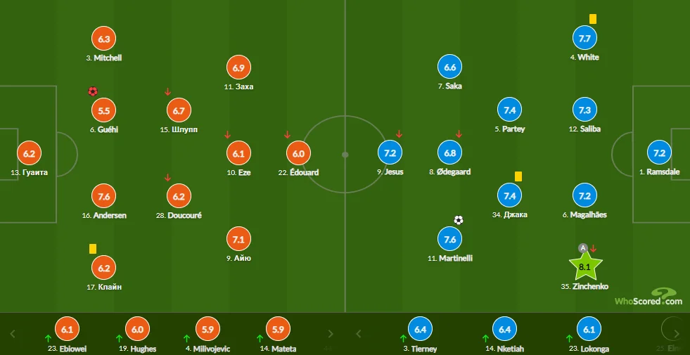 Півзахисник Арсенала Олександр Зінченко став найкращим гравцем своєї команди у матчі 1-го туру АПЛ проти Крістал Пелас (2:0) за даними WhoScored і SofaScore.