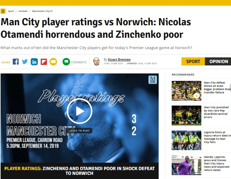 "Ганебний виступ Отаменді, Вокера та Зінченка. Лише Родрі зіграв добре", – підсумовує провал у Норвічі французькомовний паблік "містян" у соціальній мережі Твіттер, який налічує більше 10 тисяч підписників.