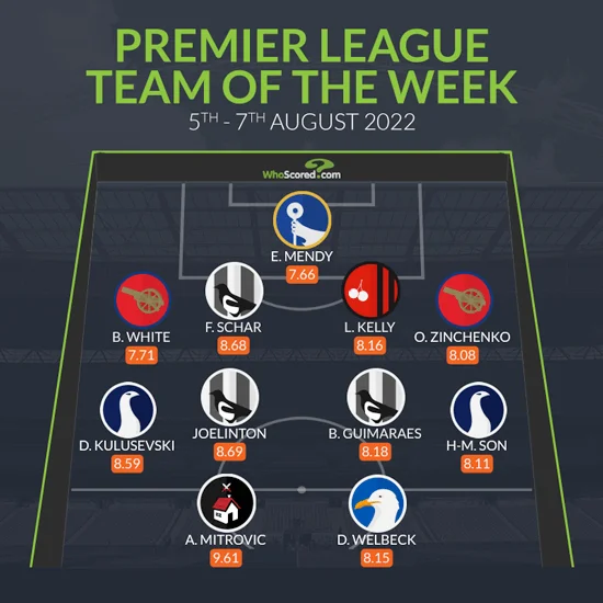 Наш співвітчизник офіційно дебютував за "канонірів" у матчі проти Крістал Пелас (2:0), відіграв 83 хвилини і записав до свого активу гольову передачу на Габріела Мартінеллі. У топ-11 увійшли троє представників Ньюкасла, по два гравці Арсенала та Тоттенхема, а також гравці Челсі, Борнмута, Брайтона та Фулхема