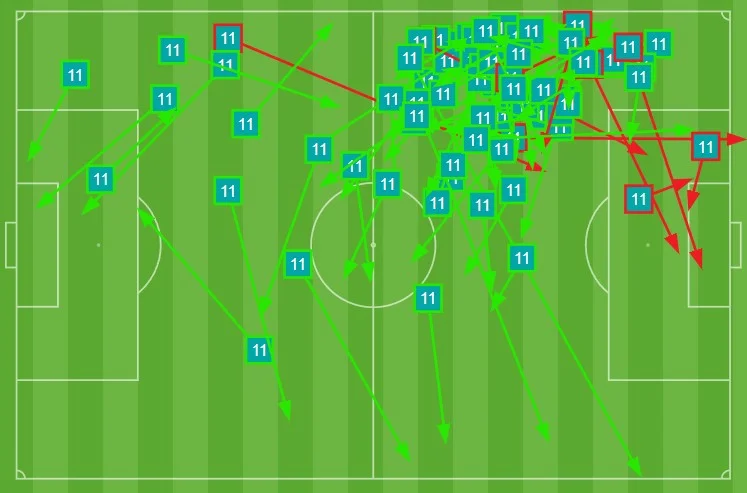 Зінченко отримав солідну оцінку від SofaScore – 7.3. Тричі відібрав м'яч, раз зіграв на перехопленні, виграв 50% дуелей і відпрацював з 91% точних передач. Наприкінці зустрічі Олександр двічі прострілював у штрафний майданчик – обидва рази неточно. Ще спробував пробити сам – удар не вдався.