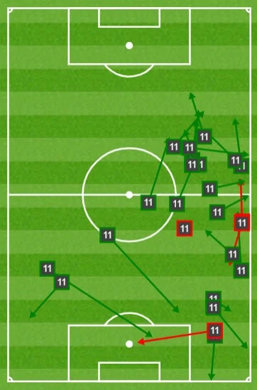 У побудові позиційної гри Пеп Гвардіола традиційно робить акцент на фланг Зінченка, завдяки чому Олександр стабільно є одним з найактивніших футболістів на полі. Вчора 44,7% атак Манчестер Сіті розвивалися через лівий край, а український фулбек звично увійшов у топ-3 гравців за кількістю дотиків до м'яча та передач. Зокрема в фінальну третину, де лише 2 з 26 його пасів не дійшли до адресатів.
