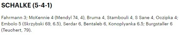 Sky Sports оцінив обох українців. Зінченко позитивно виділяється на фоні захисту Манчестер Сіті з 8 балами, а Коноплянка має середню для провального Шальке оцінку 4. Схожі бали виставив Independent: 8 для Олександра та 5 для Євгена. А от Daily Mail вгледів у Коноплянці головну загрозу воротам Манчестер Сіті та виділив його на фоні партнерів відносно високим балом – 6.5.