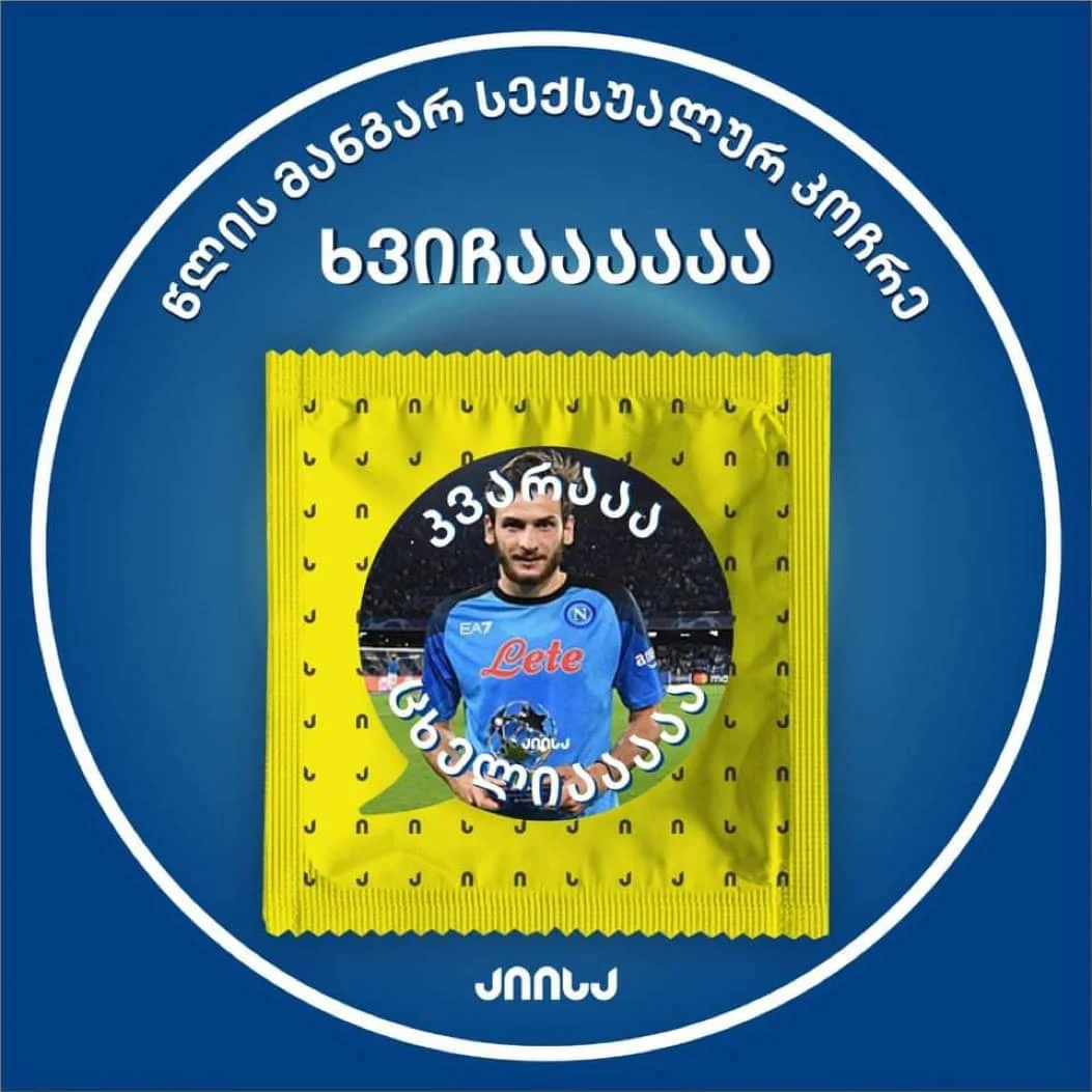 Обличчя Хвічі з'явилося на черговій партії з коментарем: "Найгарячіший грузинський чоловік року". Ціна однієї упаковки символізує ігровий номер вінгера Наполі – 7,7 ларі (2,85 долара). Рекламна кампанія сподобалася далеко не всім фанатам, адже дехто вважає асоціації з таким товаром принизливими для Кварацхелії.