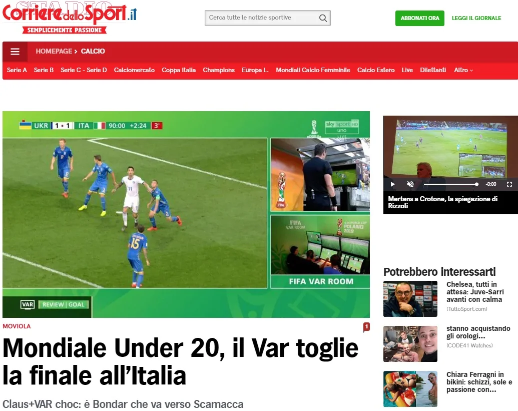 Corriere dello Sport: VAR поцупив у Італії фінал ЧС