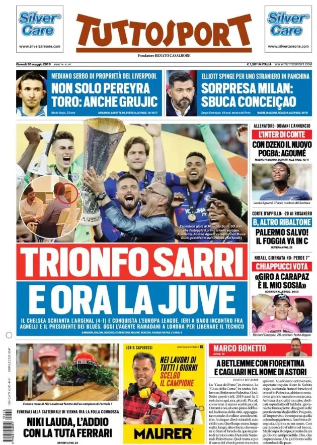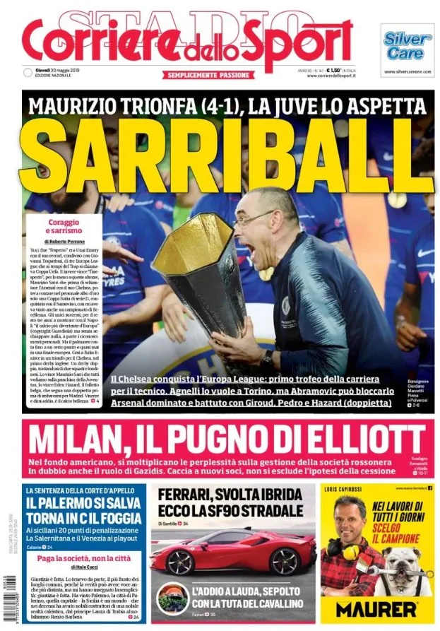 Corriere dello Sport: "Саррібол". Мауріціо тріумфує, Юве чекає на нього