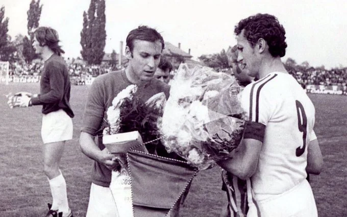 4. Уславлені бомбардири – Драган Джаїч і володар "Золотого м'яча-1967" Флоріан Альберт – перед початком матчу Югославія – Угорщина.
