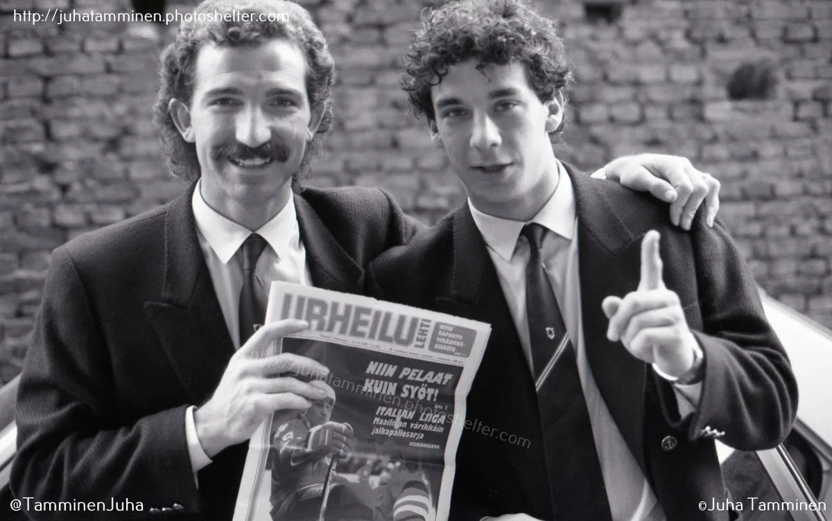 20. Гравці Сампдорії Грем Сунесс та Джанлука Віаллі щойно ознайомилися із найсвіжішими спортивними новинами (1985 рік).