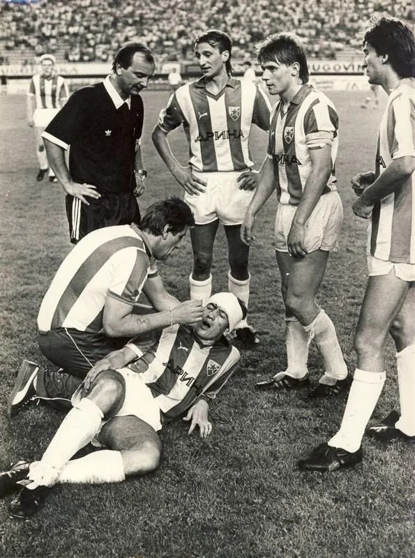 18. Рефік Шабанаджовіч, захисник Црвени Звезди, почувається не найкраще після зіткнення із представниками сплітського Хайдука. Вибухонебезпечний югославський футбол кінця 80-х.