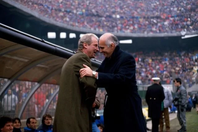 13. Дербі делла Мадонніна кінця 80-х. Тренерська дуель Джованні Трапаттоні (Інтер) та Арріго Саккі (Мілан).