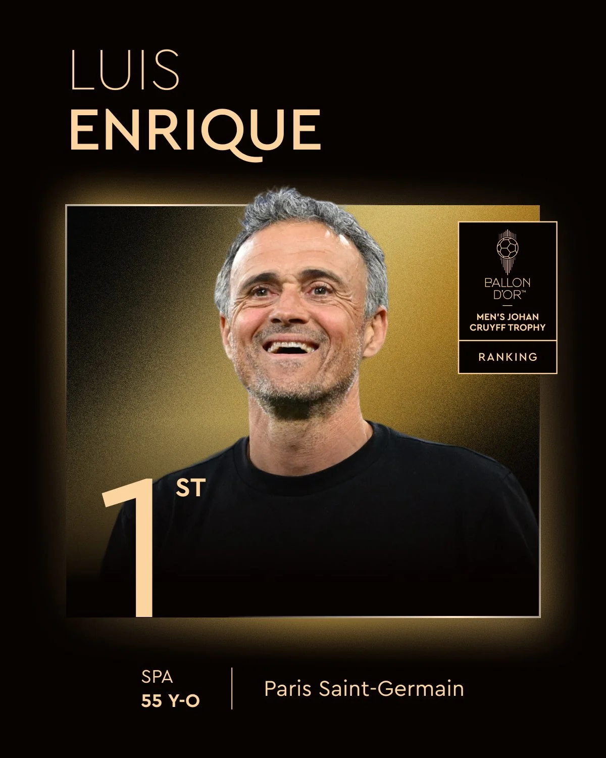 Найкращий тренер теж не здивував – Луїс Енріке, який привів ПСЖ до требла та дебютної перемоги в ЛЧ.
