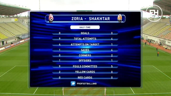 Хочолава грубо зіграв проти Лєднєва у повітряній боротьбі. І коліном у спину, і шипами бутс в кістку. Це травма орендованого динамівця і вимушена заміна. Зоря перестріляла Шахтар у перші 45 хвилин: 9:4 за ударами загалом, 4:1 за влучаннями у площину. Хоча моменти "гірників" гостріші, господарі частіше дозволяють команді Каштру бити з меж штрафного. Загалом же рівна гра. Луганський клуб гостро огризається і частіше за більшість інших клубів УПЛ змушує лідера чемпіонату грати без м'яча.