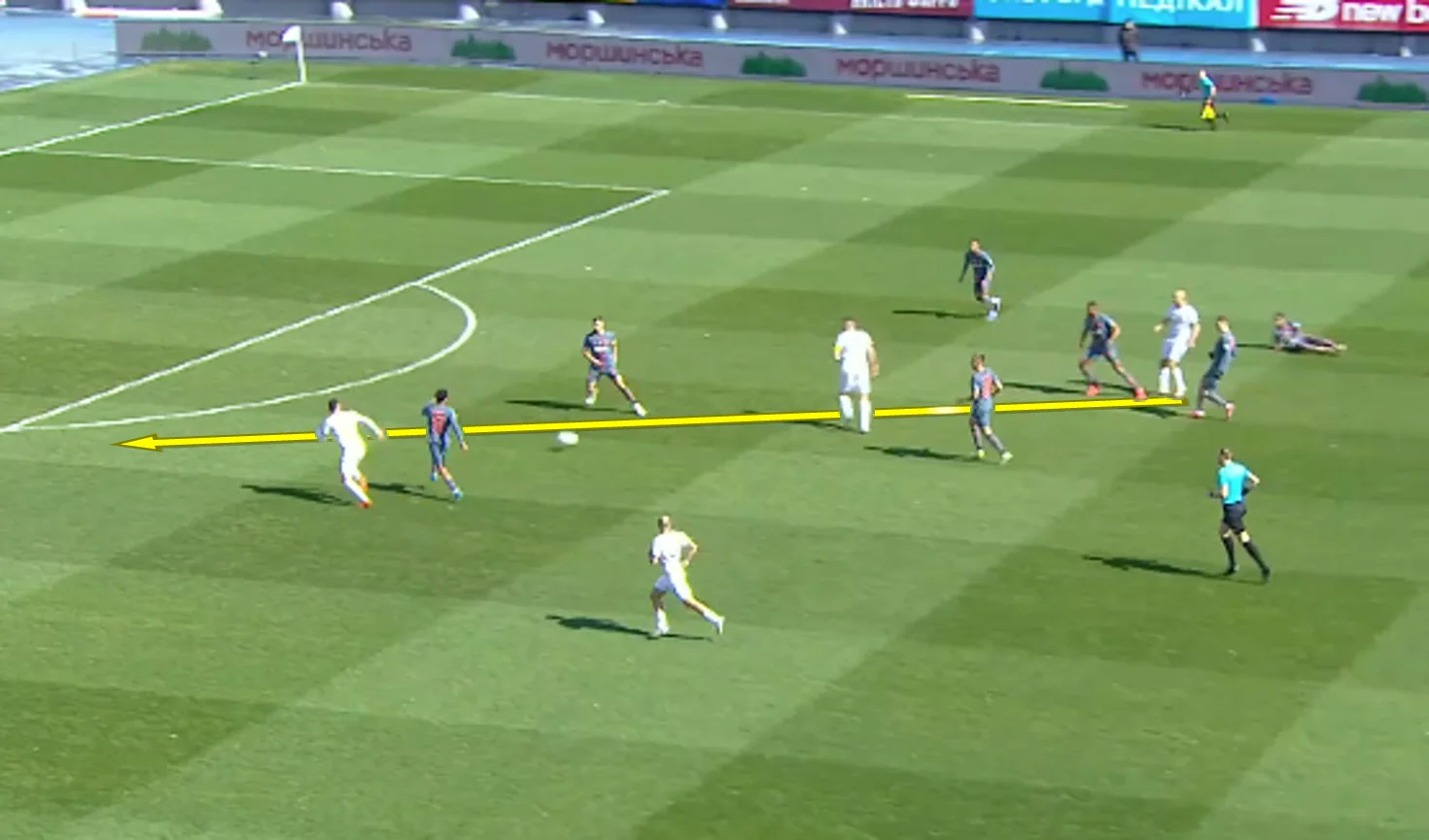 Після подачі з кутового "помаранчево-чорні" програли перше підбирання, дозволивши перезавантажити атаку. Подальший крос із лівого флангу вибив Різник, однак у зоні перед карним майданчиком ніхто не звернув увагу на суперника – бразильці вже зібрались тікати у контратаку.