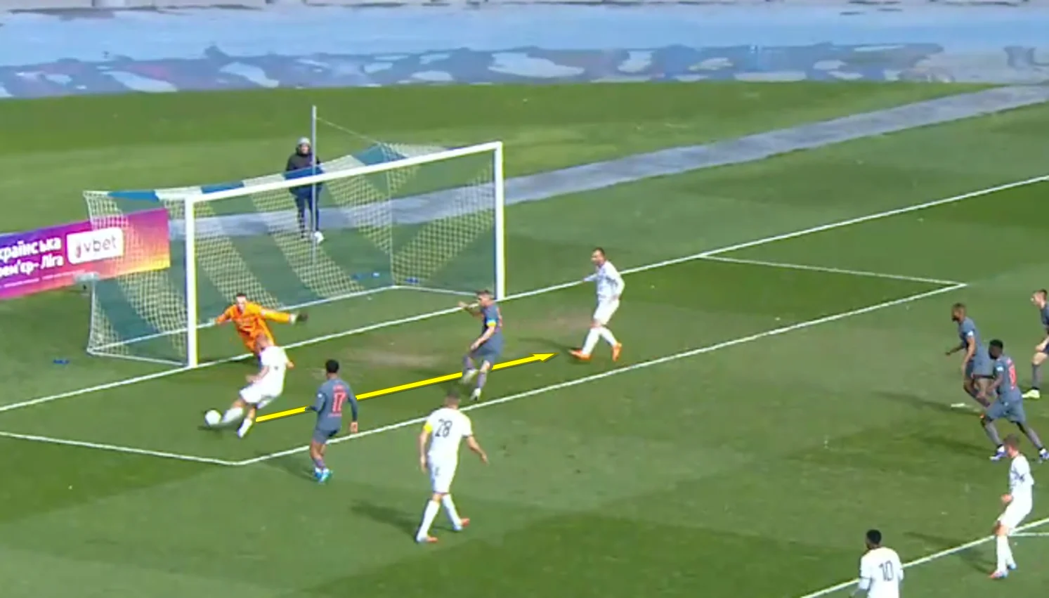 Ще за три хвилини Вінісіус відкрився під передачу на правий край штрафного, відклеївся від Вантуха й пробив з кута воротарського. Штанга врятувала Зорю!