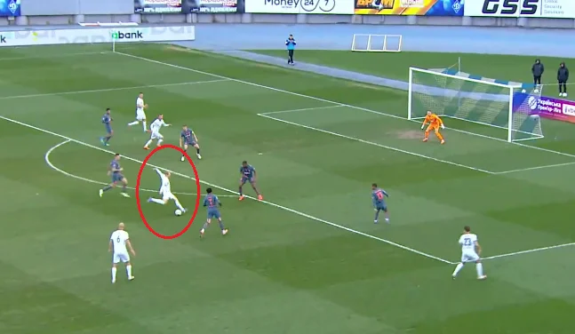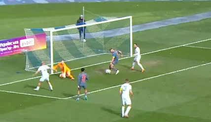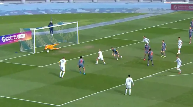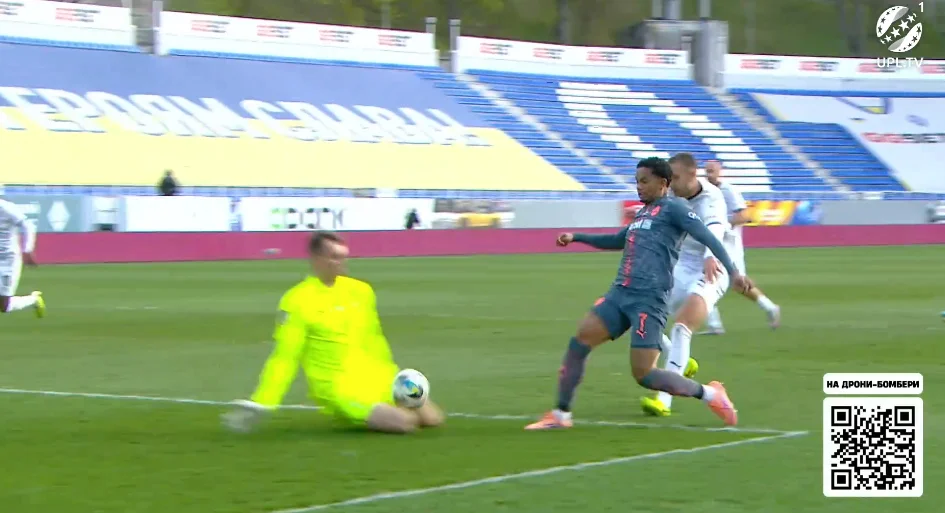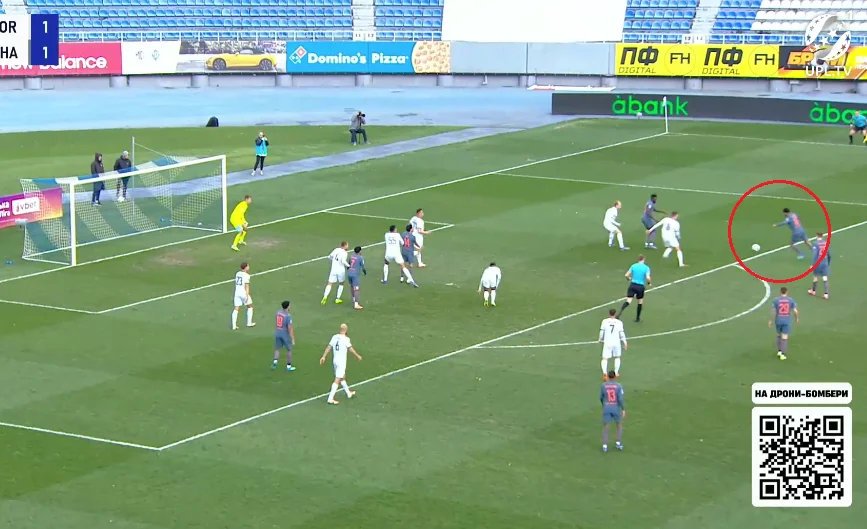 От тільки м'яч підхопив Малиш, який завдав миттєвого удару в лівий нижній кут. Різник навіть не встиг зорієнтуватись. 1:1!