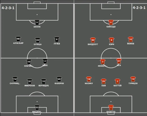ЦСКА: Бузатто – Мазіку, Лам, Маттей, Туріцов – Вілдсхут (Бе, 72), Жеферсон, Юга (Крастєв, 89), Йомов – Кері – Кайседо (Ахмедов, 83).