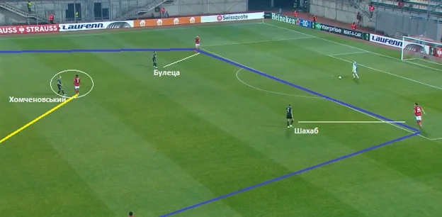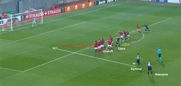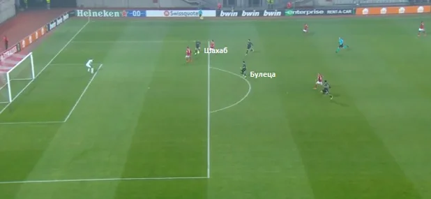Замість удару Булеца тонко віддав у штрафний на хід Шахабу. За мить до передачі хорватський легіонер Зорі зробив рух у протилежному напрямку від воріт, що трохи повинно було відволікти захисників. На жаль, комбінація до кінця не пройшла.