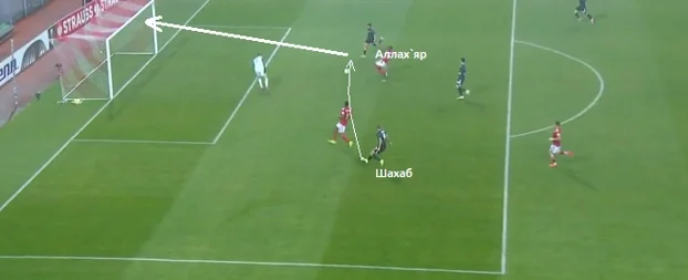 Хоча на ілюстрації вище видно, що у іранського форварда була нагода віддати на Булецу, який вривався на вбивчу позицію. Шахаб зіграв егоїстично і вирішив завершувати сам. На щастя, в нього вийшло.