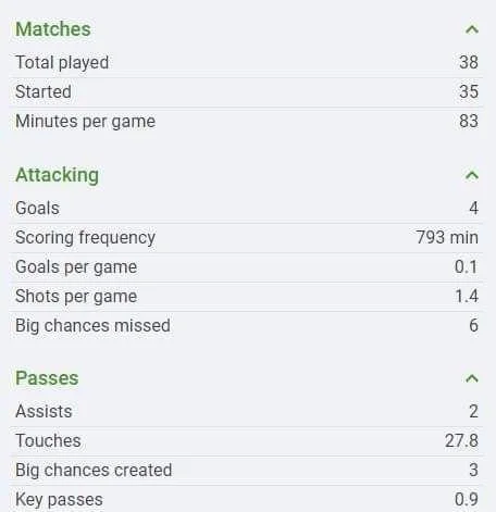 За цей час українець відзначився лише 4 голами та змарнував аж 6 супернагод. Окрім цього, Роман ще двічі асистував своїм партнерам.