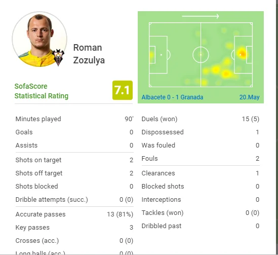Альбасете приймав Гранаду в матчі 39-го туру другого за класом іспанського дивізіону. Роман Зозуля вийшов у стартовому складі господарів і провів на полі всі 90 хвилин.