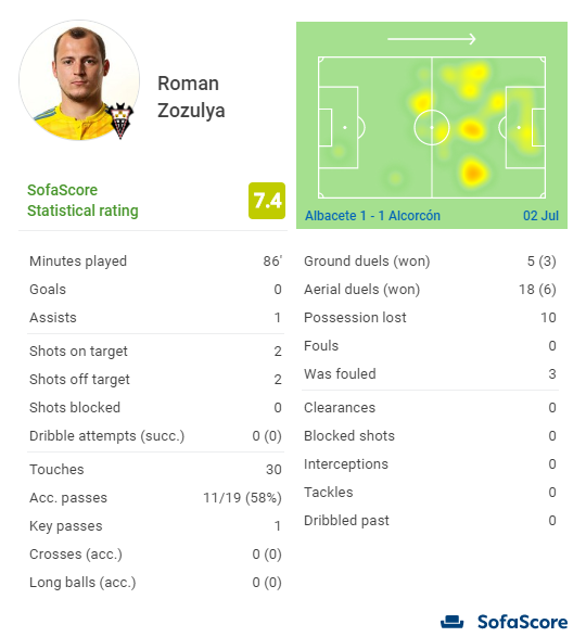 Роман Зозуля в матчі Альбасете – Алькоркон 2 липня 2020 року вийшов у стартовому складі