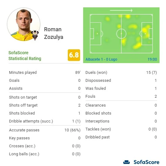 Захисник Луго Василь Кравець не міг взяти участь у матчі, оскільки поїхав у збірну України, де отримав травму. Роман Зозуля провів у складі господарів 89 хвилин, але результативні дії собі в актив не записав і отримав одну з найнижчих оцінок у команді переможців від статистичного порталу SofaScore – 6.8.