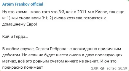 Далі – слово експертам. Артем Франков випромінює стриманий оптимізм, але нагадує – дійсно важливі матчі ще попереду.