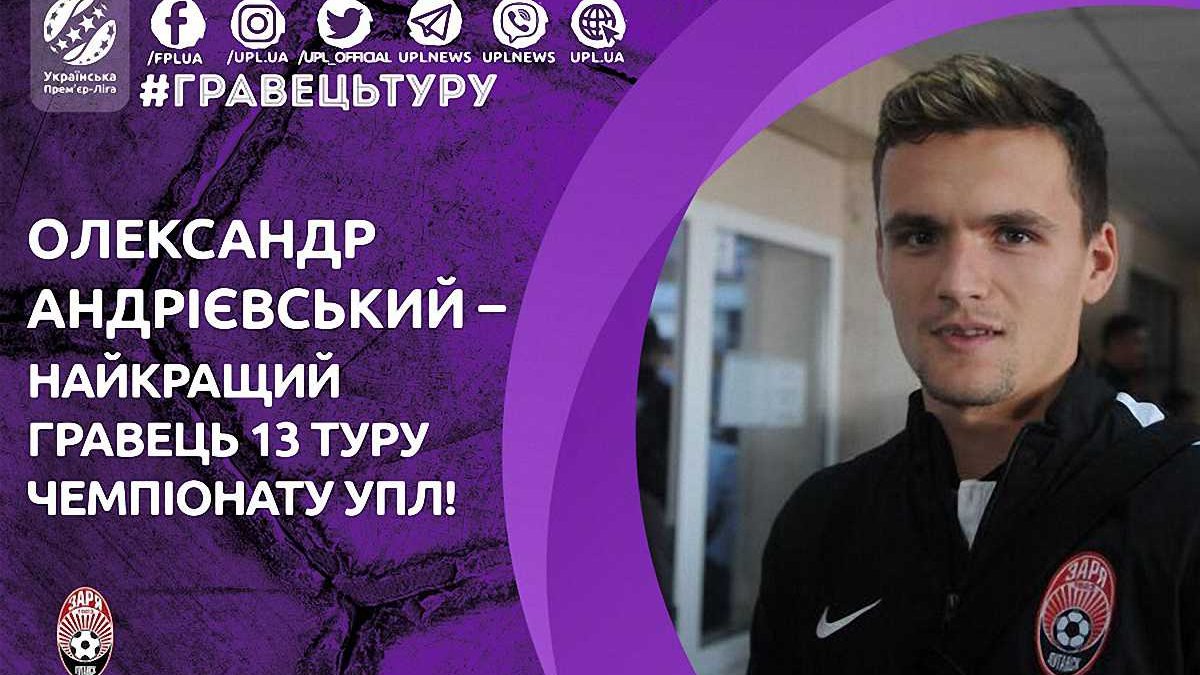 По итогам голосования, в котором приняли участие футбольные специалисты, победил полузащитник Зари Александр Андриевский. Об этом сообщает официальный сайт УПЛ.